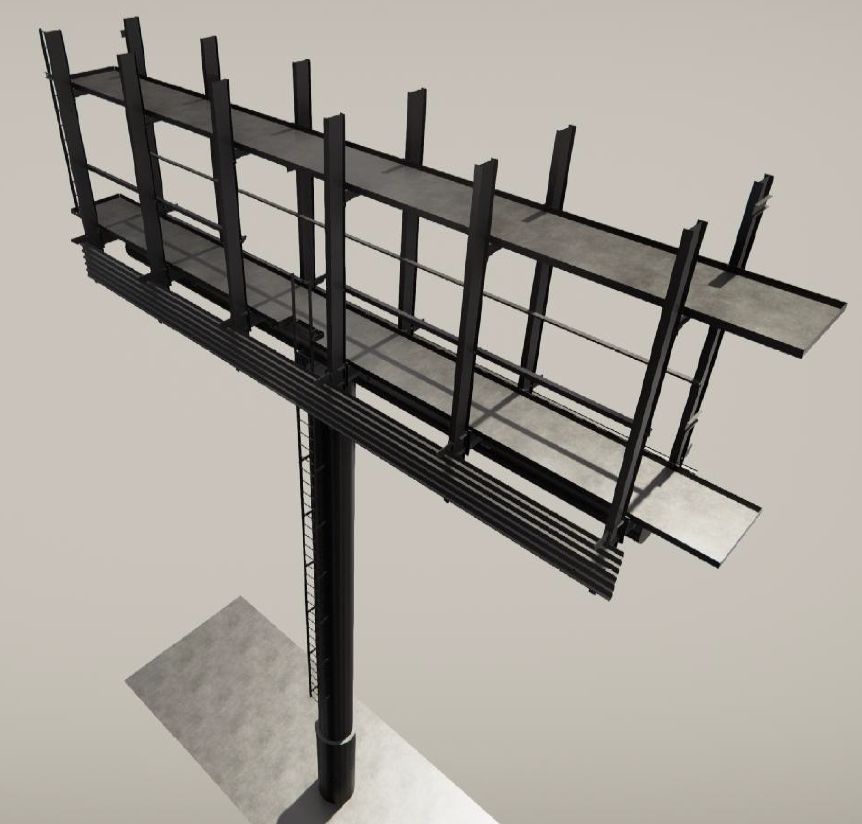 This structure size is the most common freeway billboard structure used today. It is also known as a “Bulletin” or “Paint” structure. The face is 14′ tall and 48′ wide. It can be utilized in any configuration.