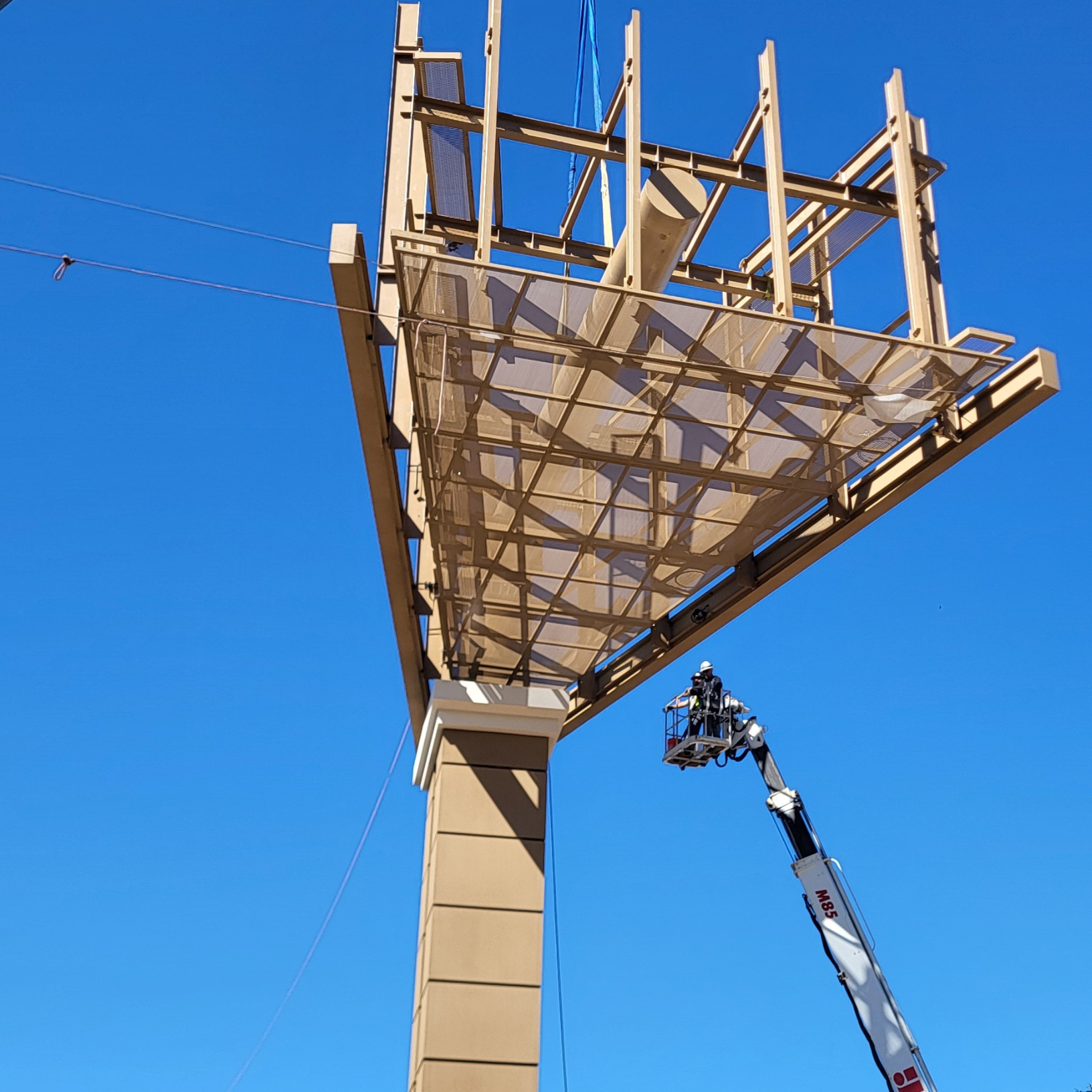 Our fabrication facility in Page, AZ carries certifications in the City of Los Angeles, the City of Pheonix and Clark County (Las Vegas), Nevada. Our fabrication team consists of trained, certified welders utilizing state-of-the-art equipment such as: CNC plasma burn tables, computer controlled angle punching/cutting machines and a submerged arc-welding machine to ensure that your sign is built to the strictest tolerances and is the highest quality product available today. We sandblast all pipe prior to priming and applying top coats consisting of the finest industrial enamels available today in the color of your choosing.